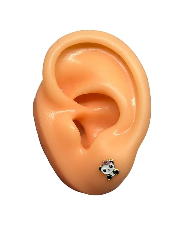 Broquel Arete Esmaltado Panda Tierno Oro 10K Garantizado