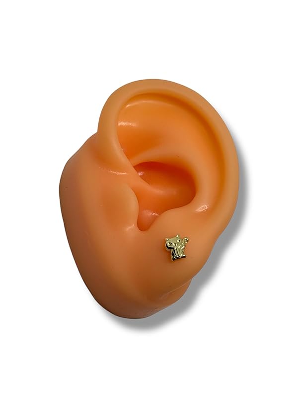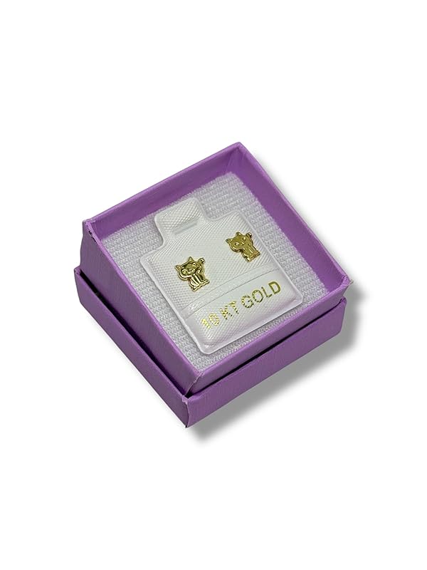 Broquel Arete Gato Tierno en Oro 10K Garantizado - Angeles Joyas