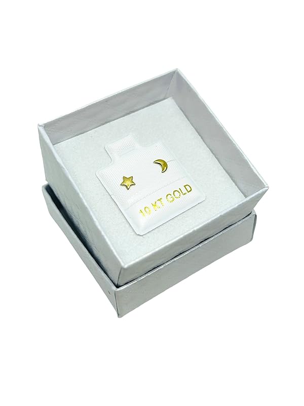 Broquel Arete Luna y Estrella Lisa en Oro 10K Garantizado (Media Oreja o Normal) - Angeles Joyas
