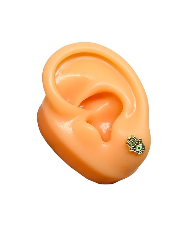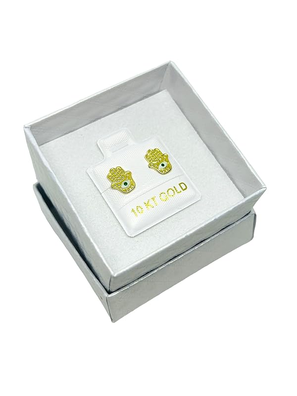 Broquel Arete Mano de Fatima Ojo Verde en Oro 10K Garantizado - Angeles Joyas