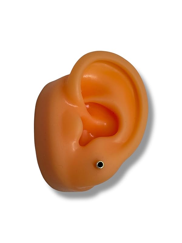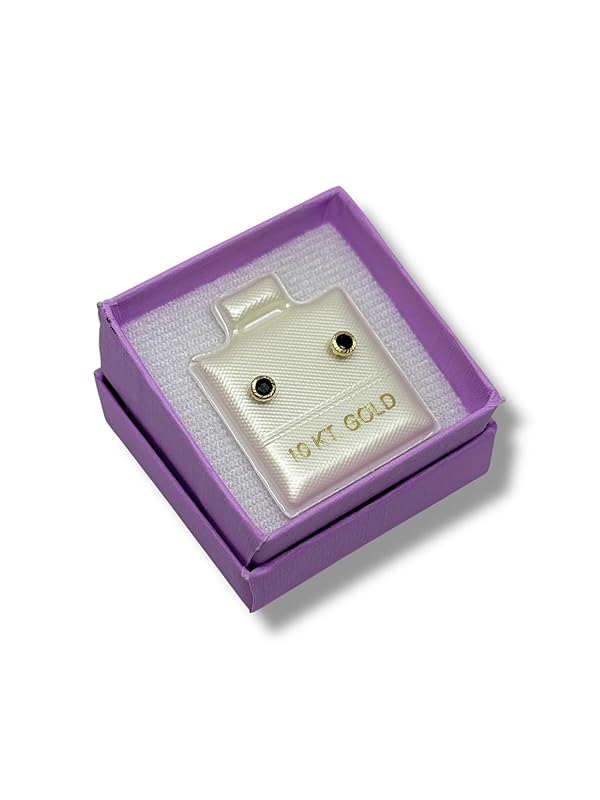 Broquel O Arete Biselado Negro En Oro 10k Garantizado N.3 - Angeles Joyas
