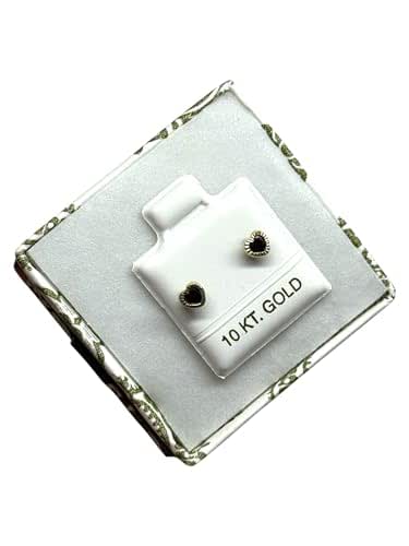 Broquel O Arete Corazon Biselado En Oro 10k Garantizado N.5 Negro - Angeles Joyas
