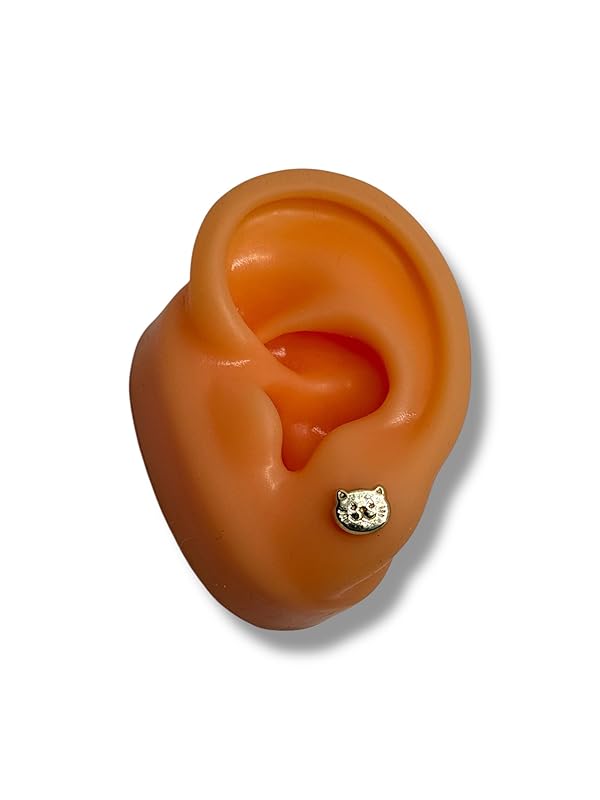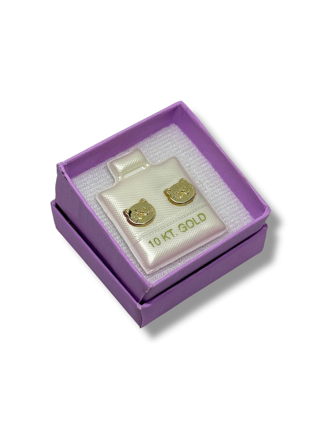 Broquel O Arete Gato Cara Sonriente En Oro 10k Garantizado - Angeles Joyas