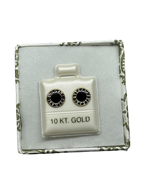 Broquel O Arete Negro Circular Esmaltado En Oro 10k Garantizado