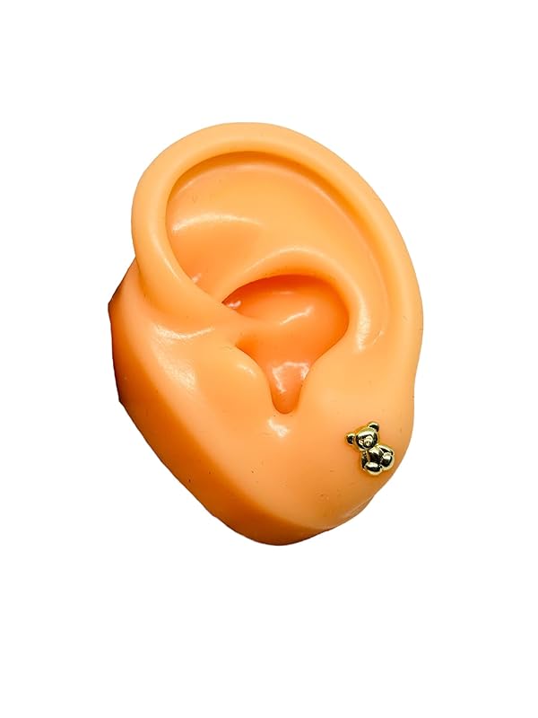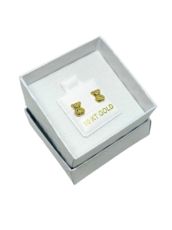 Broquel o Arete Oso liso Pequeño en Oro 10K Garantizado - Angeles Joyas