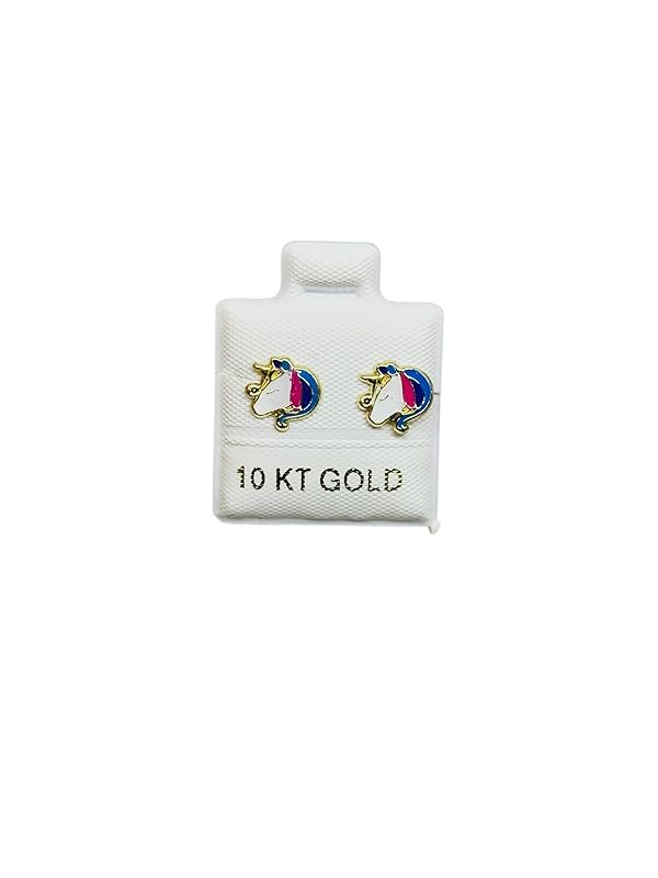 Broquel o Arete Unicornio Esmaltado en Oro 10K Garantizado - Angeles Joyas