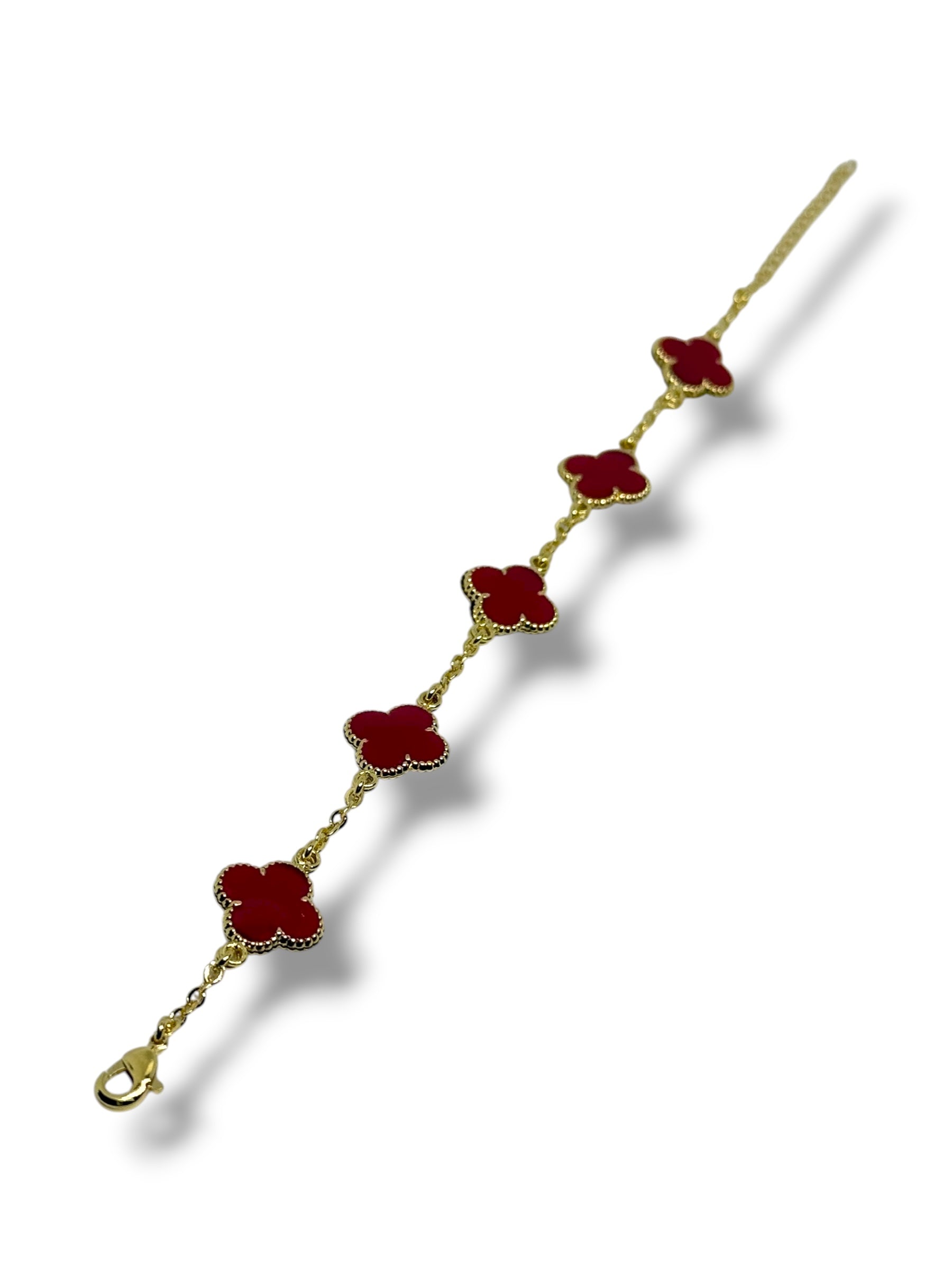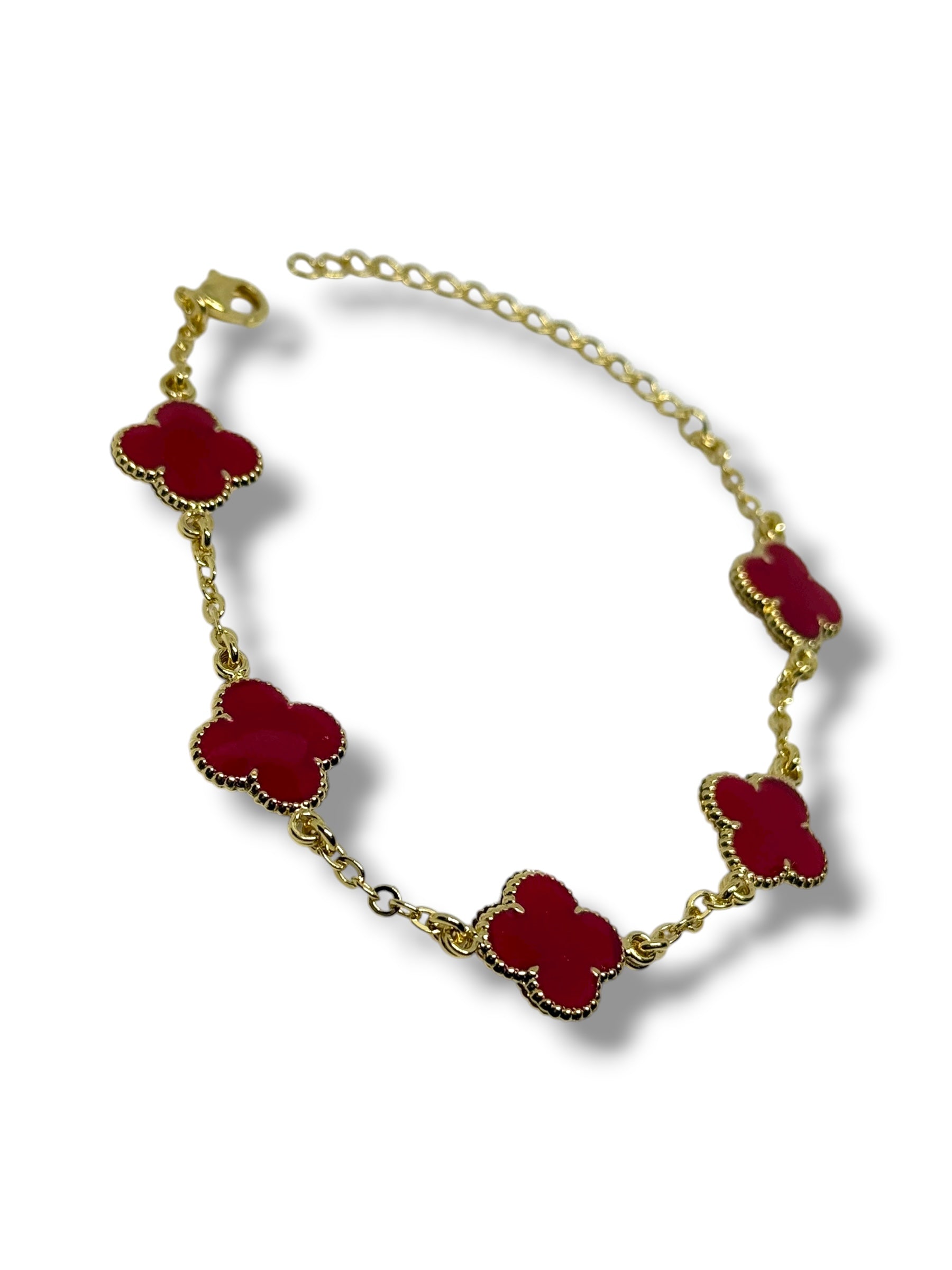 Pulsera Ajustable Flor Marca Trébol Chapa Oro Laminado 14k (Rojo)