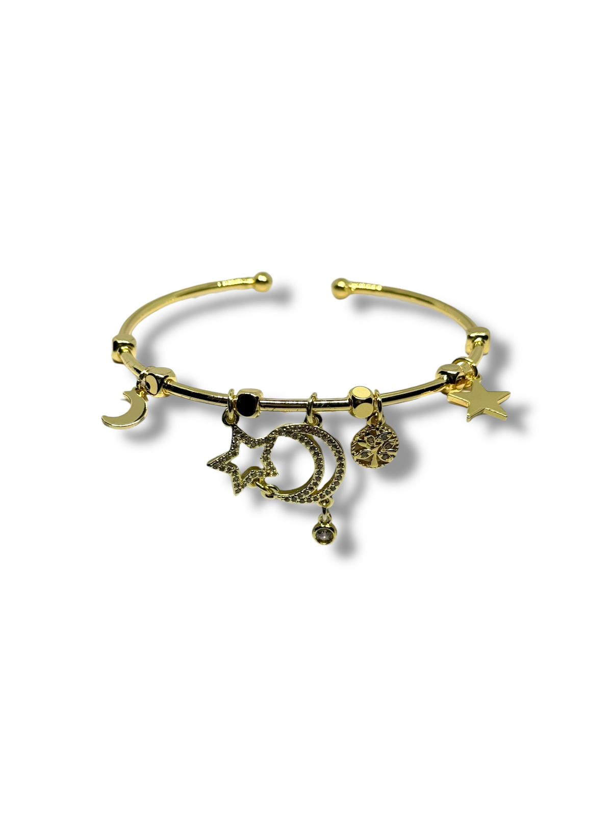 Pulsera O Aro Dijes Luna y Estrella Chapa De Oro Laminado 14k
