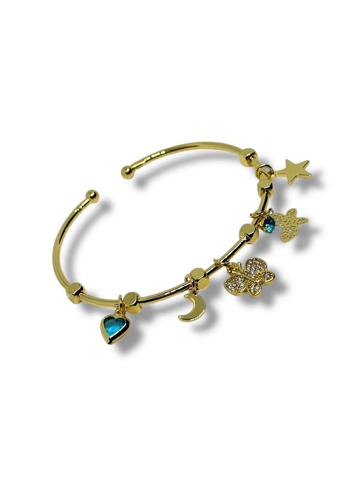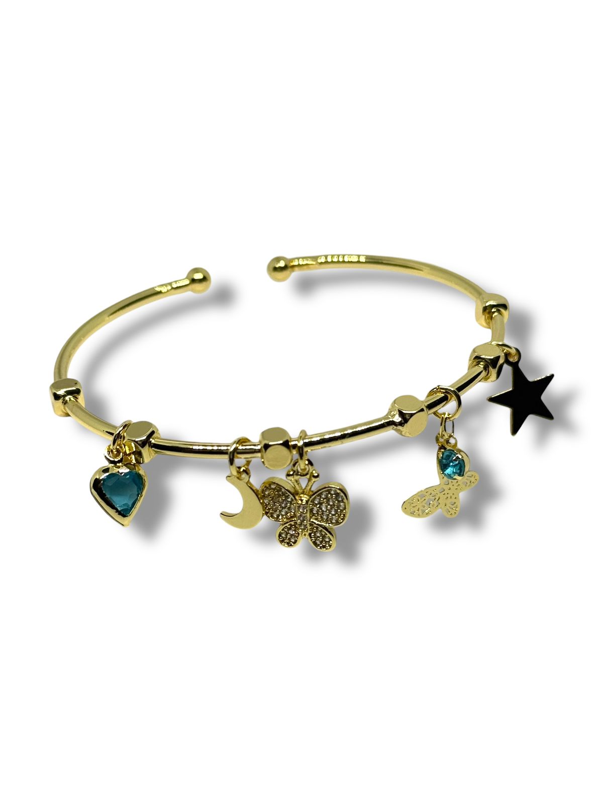 Pulsera O Aro Dijes Mariposa Azul Chapa De Oro Laminado 14k